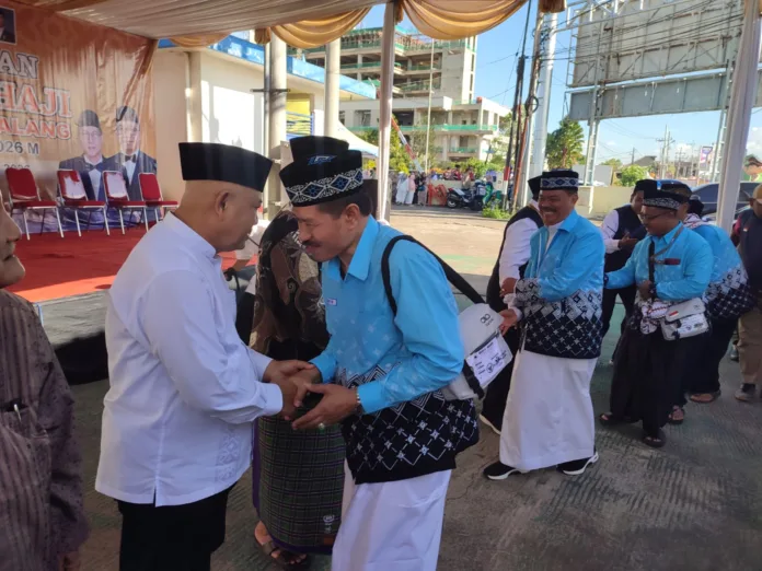 MALANG POSCO MEDIA, MALANG- Jamaah Haji Kabupaten Malang, Jumat (24/4) sore diberangkatkan Bupati Malang HM. Sanusi dari pintu masuk tol Singosari, Kabupaten Malang. Kepala Kantor Kementrian Haji dan Umrah Kabupaten Malang Abd Salam mengatakan jamaah haji yang berangkat Jumat sore itu merupakan jamaah haji yang tergabung dalam Kelompok Terbang (Kloter) 14. Jumlahnya sebanyak 359 orang. Mereka wajib masuk asrama haji Sukolilo pada pukul 17.00.
