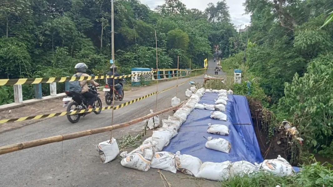 “Akses jalan sedikit terhambat. Untuk keamanan, warga dan petugas di lapangan telah memasang blokade darurat menggunakan batang bambu agar pengendara tidak terperosok. Mengingat adanya potensi longsor susulan pada bahu jalan,” tambahnya.